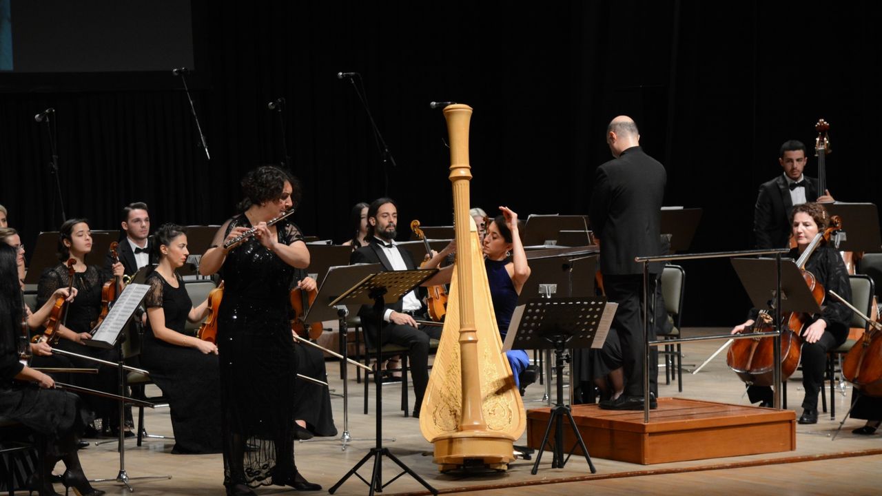 Orkestra Şefliğini Murat Göktaş’ın, Koro Şefliğini ise Ebru Kemalbay Eren’in üstlendiği konserin solistliğinde ise Nilay Gösterişli (Flüt) ve Ece Yavaş Öztürk (Arp) yer aldı. Konserde W. A. Mozart’tan Flüt ve Arp Konçertosu ile T. Albinoni tarafından bestelenen Adagio dinleyicilerle buluştu. Konserin devamında ise ASO ve Devlet Konservatuvarı Gençlik Korosu; F. Canselen’den “Büyük Atamıza Kantat”, S. Aktan’dan “Kurtuluş Günü” ve H. Ali Toker’den “100. Yıl Marşı” eserlerini seslendirdi.