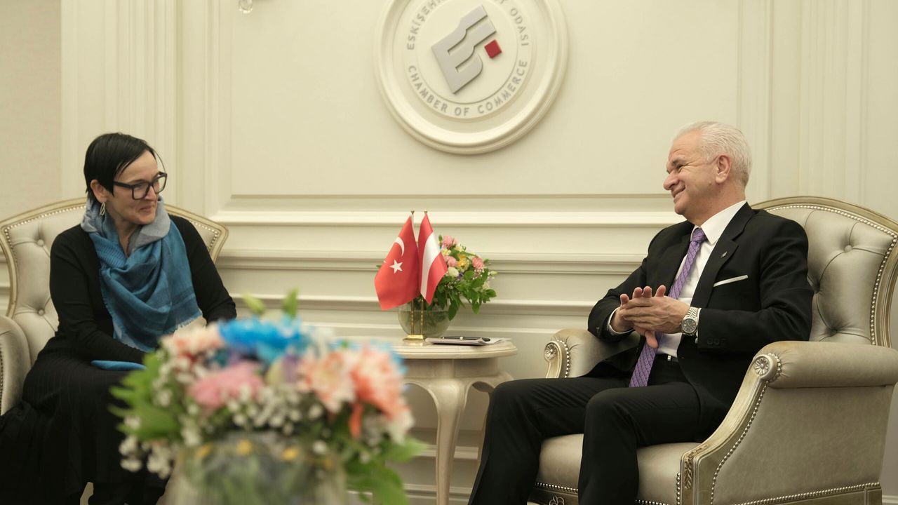 Avusturya’nın Ankara Büyükelçisi Gabriele Juen ve Avusturya Ticaret Müsteşarı Gerhard Lackner’in katılımıyla ETO’da gerçekleştirilen toplantıda, Eskişehir ve Avusturya arasındaki ticaret hacminin artırılması için atılacak adımlar ve işbirliği yapılabilecek sektörler üzerinde duruldu.