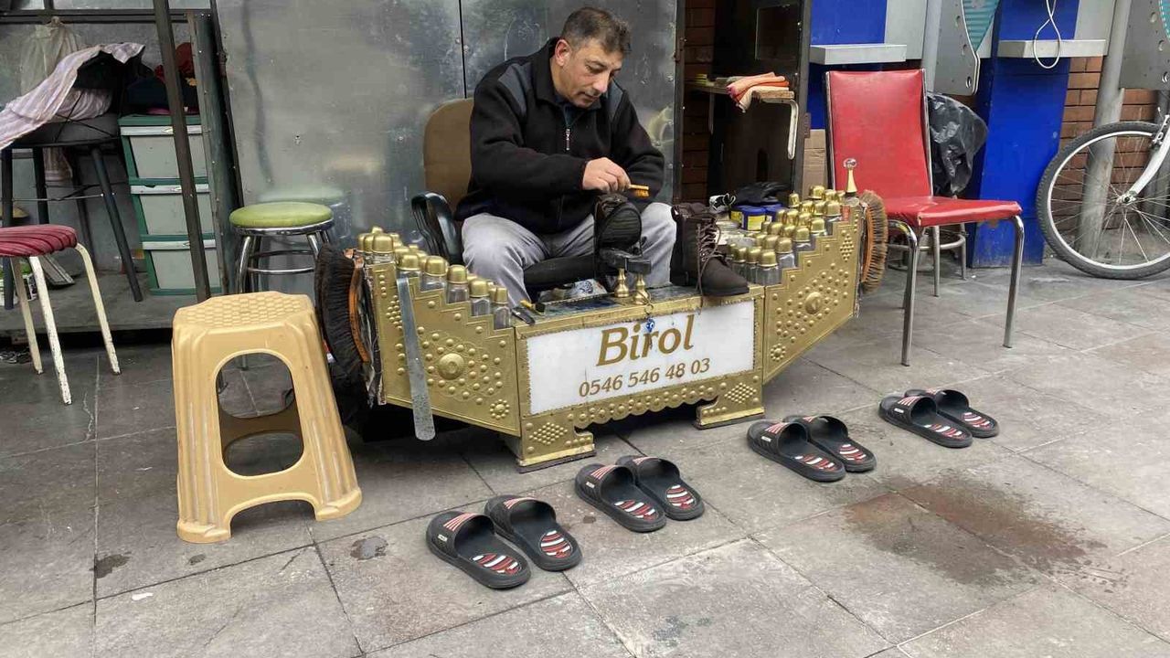 Eskişehir’de ayakkabı boyacılığı yapan Birol Kuyucan, boya sandığının üzerine yazdığı telefon numarası sayesinde hem müşterileriyle daha rahat iletişim kuruyor hem de randevu sistemiyle çalışıyor.