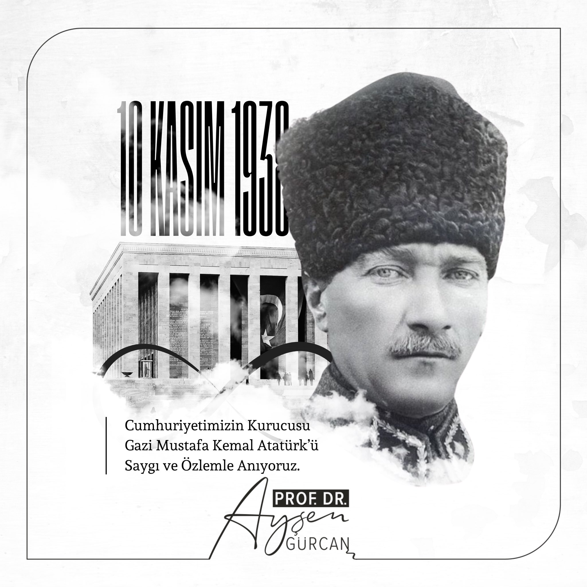 Adalet ve Kalkınma Partisi Eskişehir Milletvekili Prof.Dr Ayşen Gürcan 10 Kasım Atatürk'ü Anma Günü dolayısıyla bir mesaj yayınladı