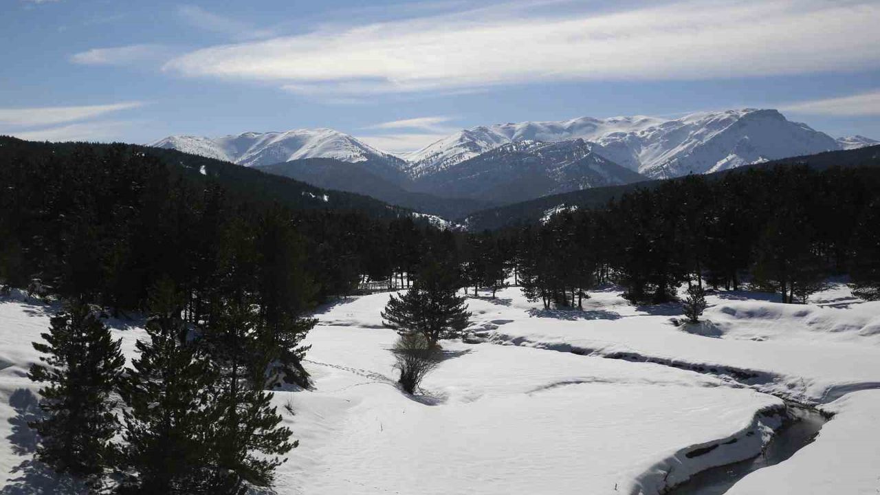 Afyonkarahisar’da kar altındaki tepelerden akan dereler ile çam ağaçları seyri doyumsuz manzaralar sundu.