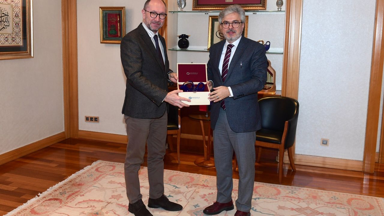 Anadolu Üniversitesi Rektörlük Ofisi’nde gerçekleşen ziyarette, Millî Eğitim Bakanlığı ve Anadolu Üniversitesi arasında yürütülen iş birlikleri değerlendirilerek ortak projeler üzerinde fikir alışverişinde bulunuldu.