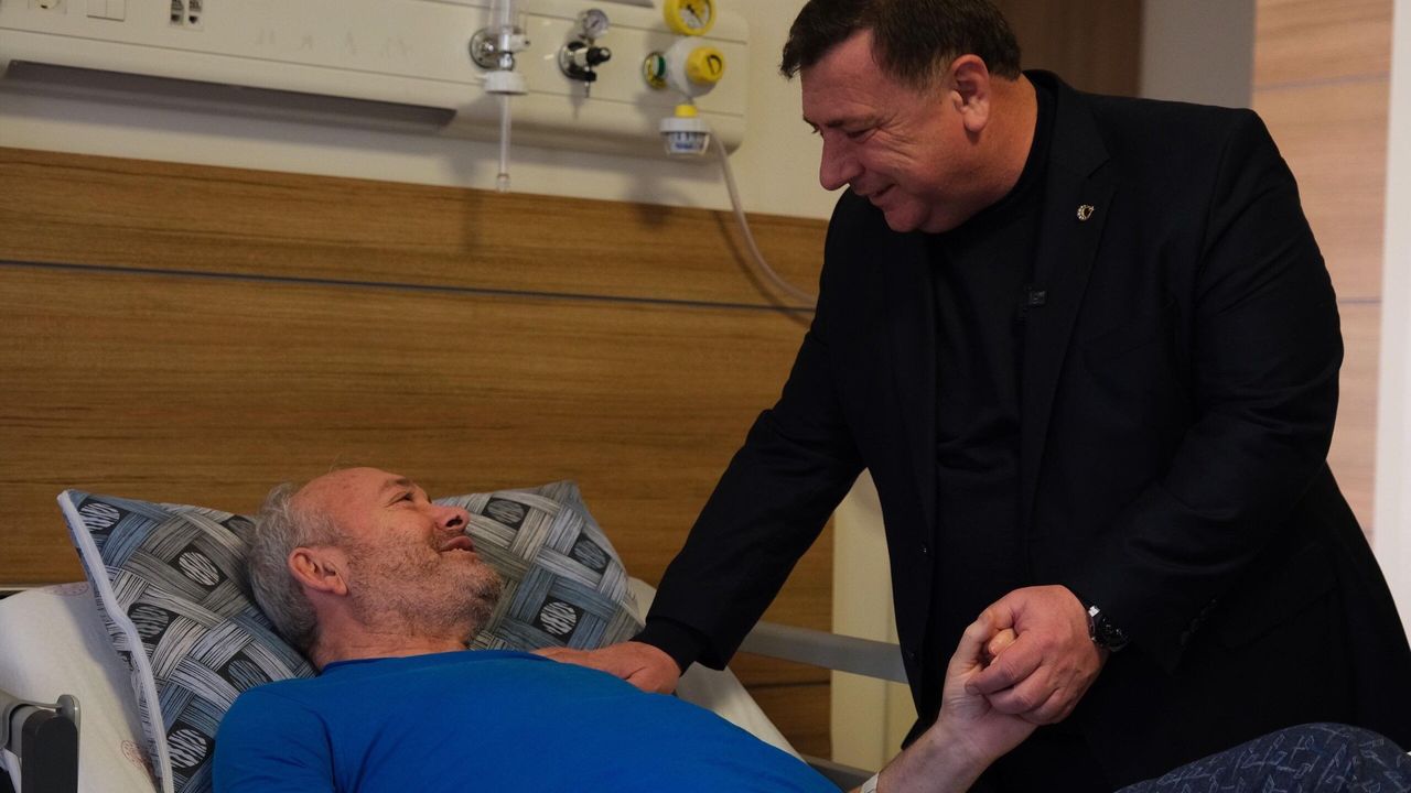 Şehir Hastanesi Müdürü Doç. Dr. Mustafa Sungur ile birlikte Şehir Hastanesi'nde tedavi gören hastaları ve hasta yakınlarını ziyaret eden Özkan Alp, geçmiş olsun dileklerini iletti.