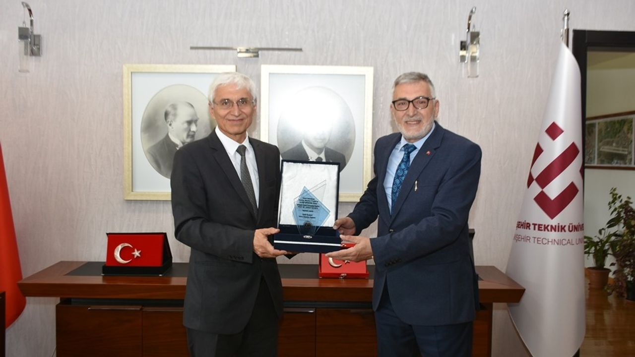 Eskişehir İnönü Belediye Başkanı Kadir Bozkurt, Eskişehir Teknik Üniversitesi (ESTÜ) Rektörü Prof. Dr. Adnan Özcan'ı makamında ziyaret etti.