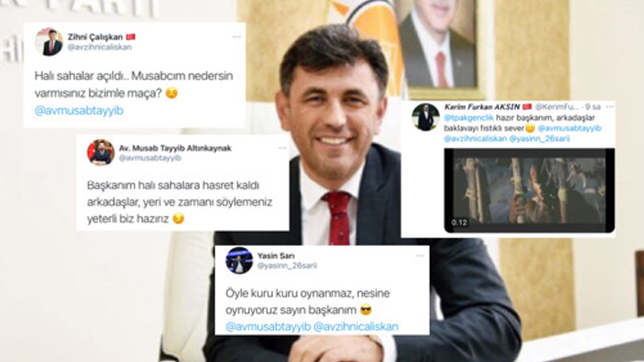 AK Parti Eskişehir İl Başkanı Av. Zihni Çalışkan, sosyal medya hesabından AK Parti Eskişehir İl Gençlik Kolları Başkanı Musab Tayyib Altınkaynak’a halı saha maçı davetinde bulundu.
