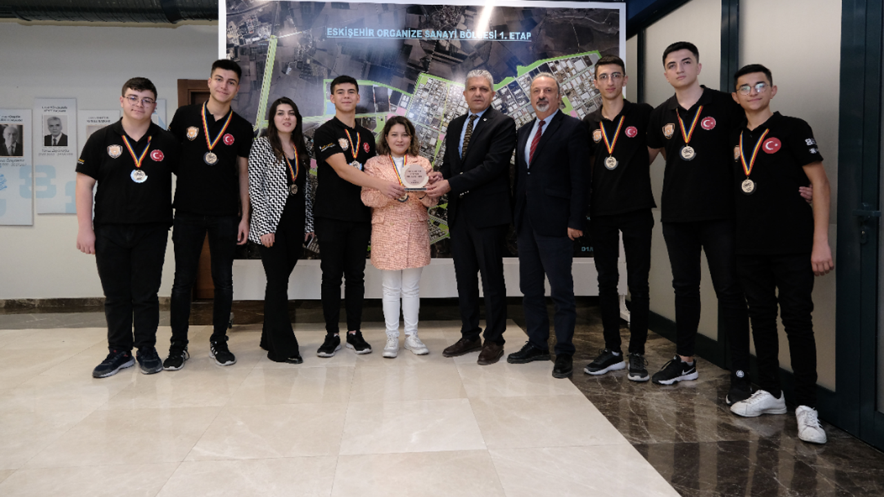 Eskişehir OSB Yönetim Kurulu Başkanı Nadir Küpeli, Romanya’da düzenlenen “Robo Challenge” yarışmasında mini sumo kategorisinde dünya ikincisi olan Özel EOSB Mesleki ve Teknik Anadolu Lisesi robot takımını ağırladı. Başarılı öğrencileri tebrik eden Başkan Küpeli, “Dünya arenasında bayrağımızı ve okulumuzun flamasını dalgalandırma başarısı gösterdiniz. Sizlerle gurur duyuyoruz” dedi.