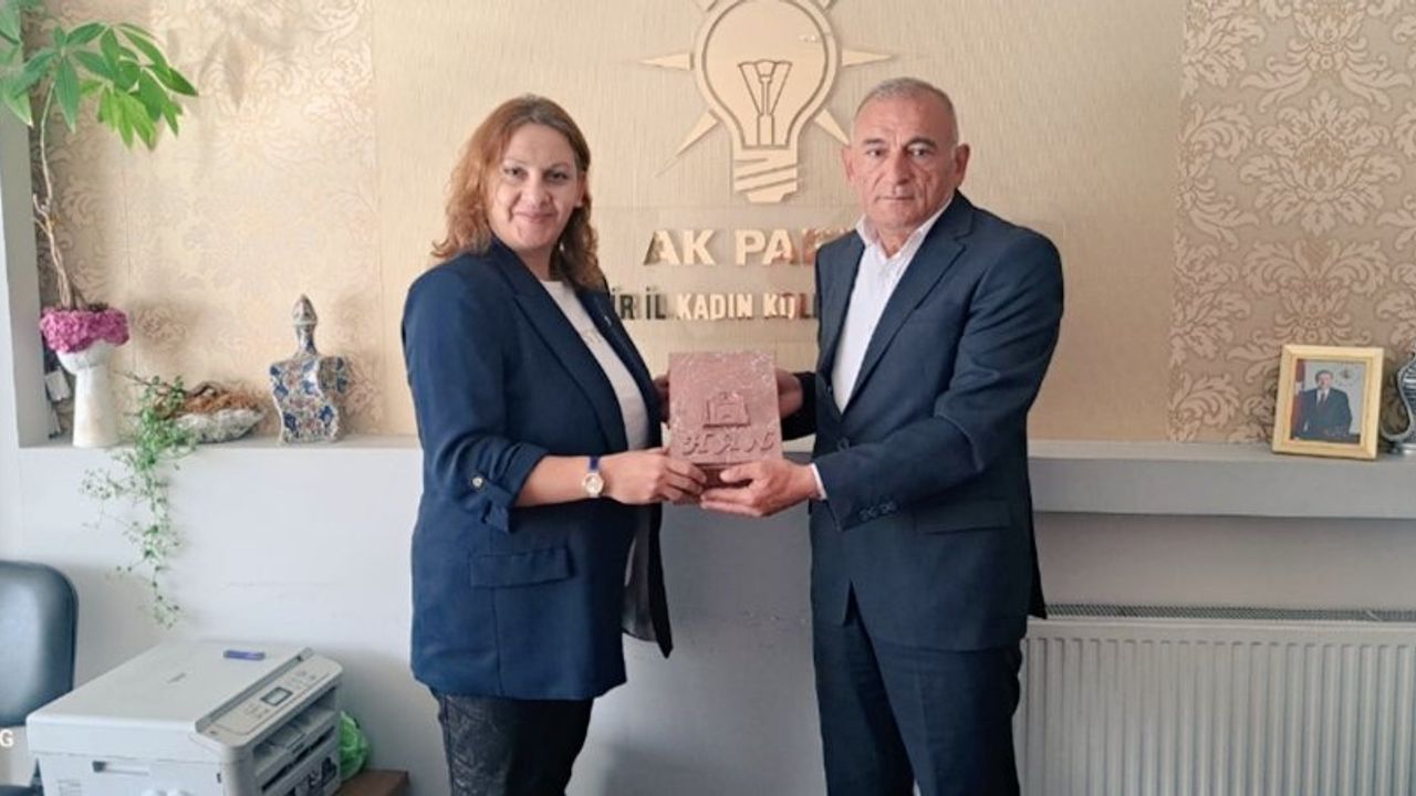 Yerel Seçimlerde AK Parti'den Han ilçesi Belediye Başkan aday adaylığı başvurusunu yapmak için Devlet memurlarının resmi istifa sürecini bekleyen Bekir BELCELİ Adalet ve Kalkınma Partisi il Kadın Kolları Başkanı Özlem ÜNALlR'ı makamında ziyaret etti