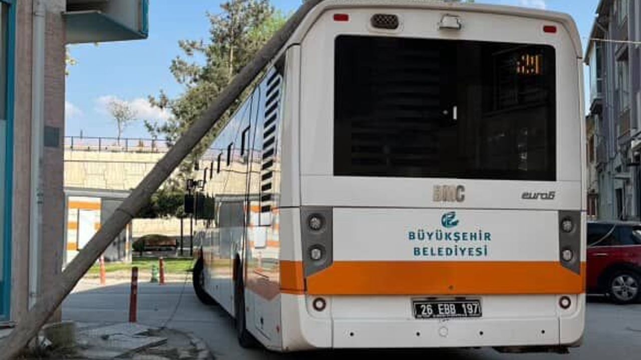 Eskişehir'de belediye otobüsü kablosuna takıldığı direği devirirken, kazada yaralanan olmadı.
