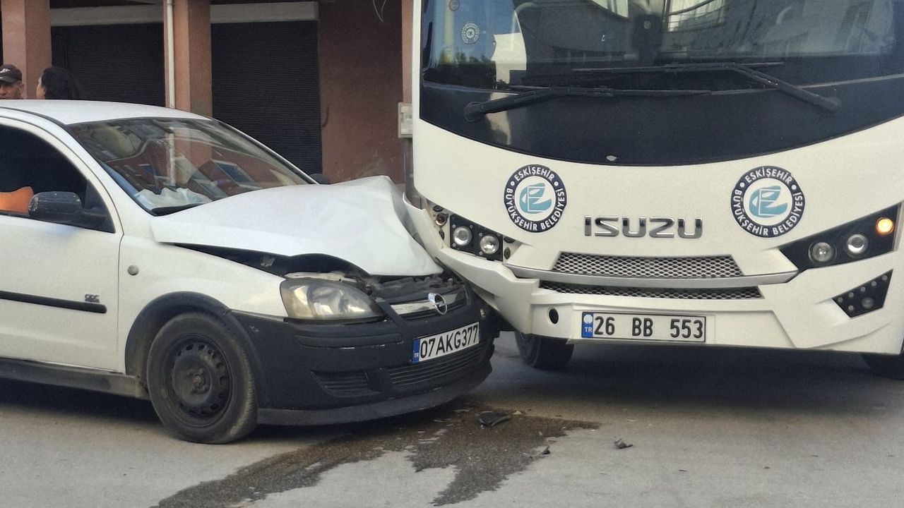 Eskişehir'de belediye otobüsü ve hafif ticari aracın çarpışması sonucu meydana gelen trafik kazası maddi hasarla atlatıldı.