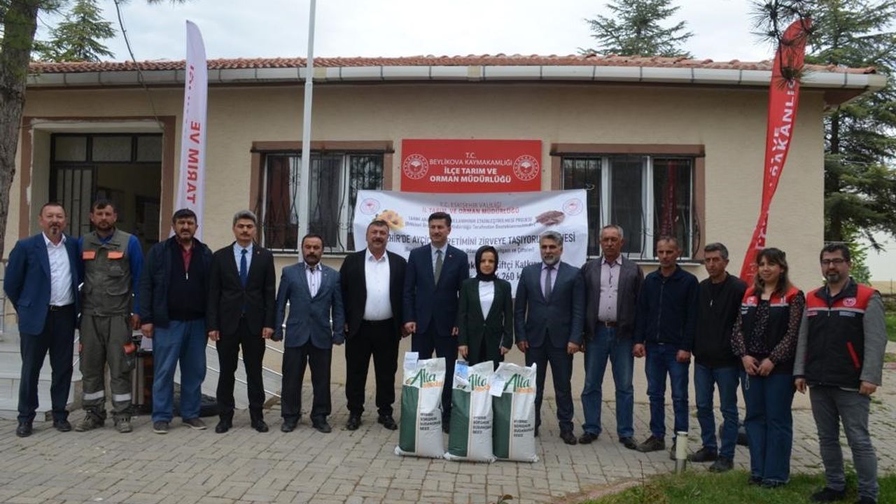 Tarım ve Orman Bakanlığı’nın Tarım Arazilerinin Kullanımının Etkinleştirilmesi (TAKE) projesi ile desteklenen ‘Beylikova Atıl Arazilerini Ayçiçeği Sarısına Boyuyoruz Projesi’ çerçevesinde bin dekar arazide yağlık ayçiçeği tohumu ekildi. Ayrıca ‘Alternatif Yem Bitkisi Silajlık Sorgum Yetiştiriciliği Projesi’ ile 500 dekar alana silajlık sorgu tohumu ekildi. Tohum ekim törenine İl Tarım ve Orman Müdürü Ender Muhammed Gümüş, Beylikova Kaymakamı Saliha Karataş, Beylikova Belediye Başkanı Özkan Alp katıldı.