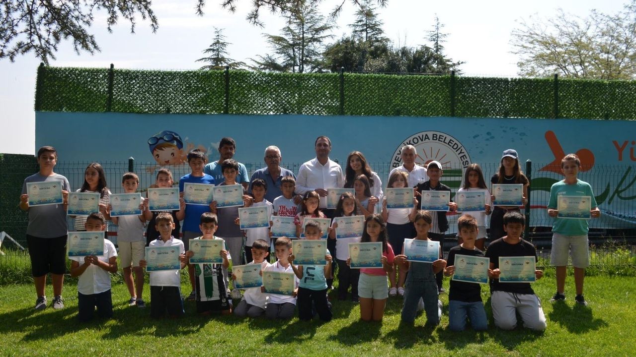 Beylikova’da yüzme kursuna katılan 103 öğrenci ve futbol kursuna katılan 50 öğrenciye kurs bitirme belgeleri Belediye Başkanı Av. Hakan Karabacak tarafından verildi.