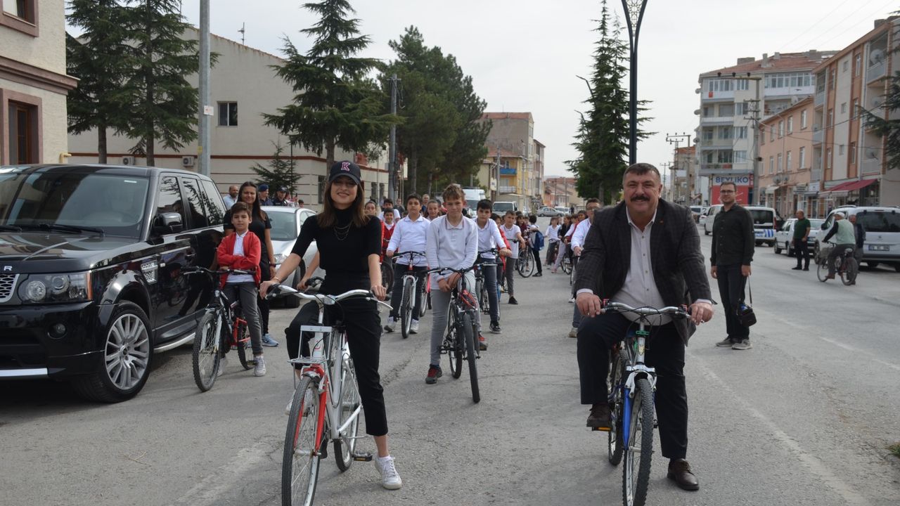 Beylikova’da Cumhuriyet'in 100. yılında düzenlenen etkinlikler kapsamında Beylikova Kaymakamı Kübra Eroğlu, Belediye Başkanı Özkan ALP ve öğrencilerin katılımıyla bisiklet turu yapıldı.