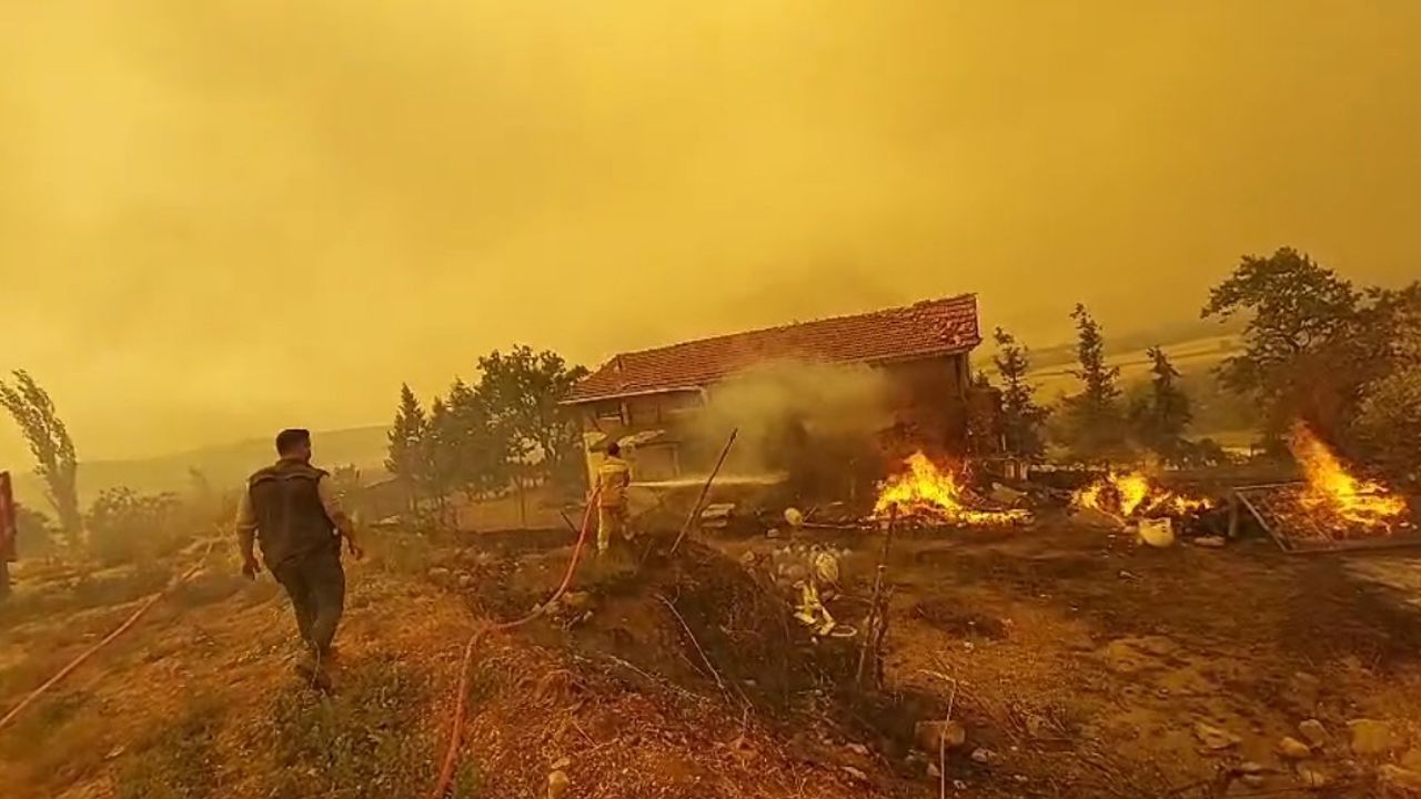 Sakarya'da dün çıkan ve Bilecik'e sıçrayan orman yangını devam ederken, Büyüksürmeli köyünde 3 ev daha alevler içinde kaldı.