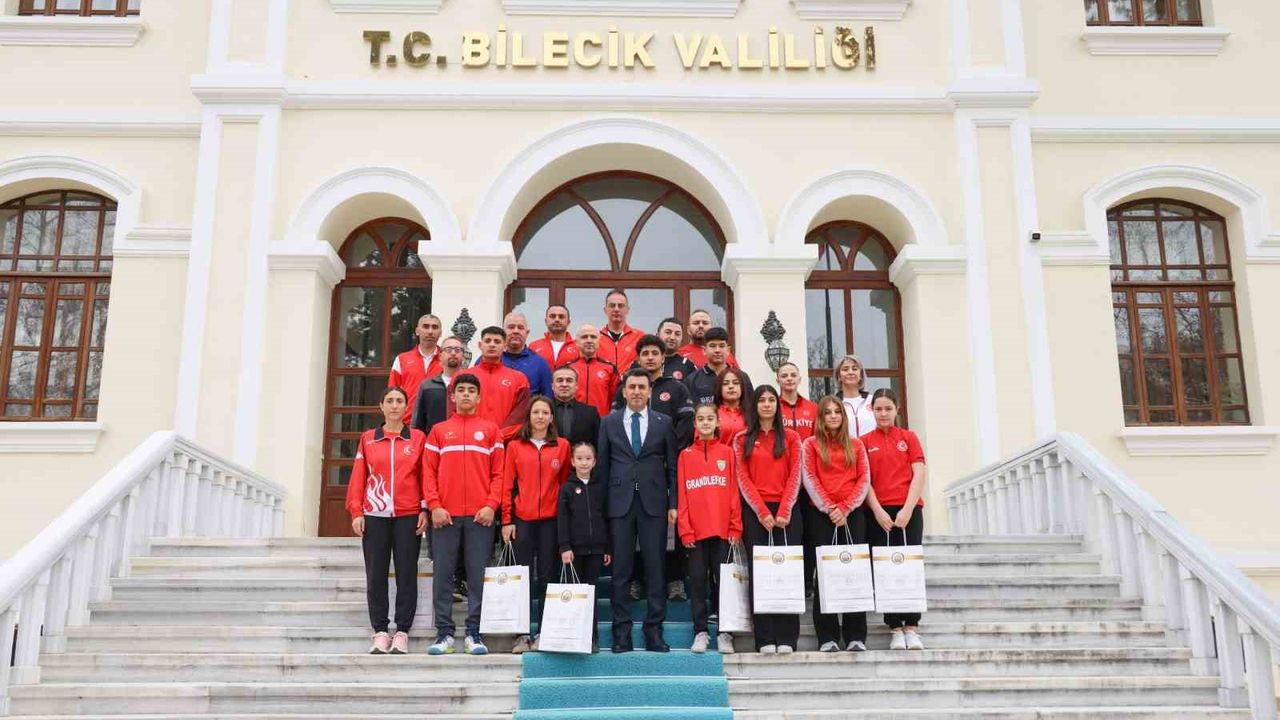 Büyük başarılara imza atan sporcuları tebrik eden Vali Aygöl, onlara hediyelerini takdim ederek desteklerini dile getirdi. Sporcuların azmi ve başarılarından gurur duyduklarını belirten Vali Aygöl, "Sizler, Bilecik’in adını spor alanında en iyi şekilde temsil ediyorsunuz. Elde ettiğiniz zaferler, şehrimiz için büyük bir gurur kaynağı. Başarılarınızın devamını diliyorum" dedi.