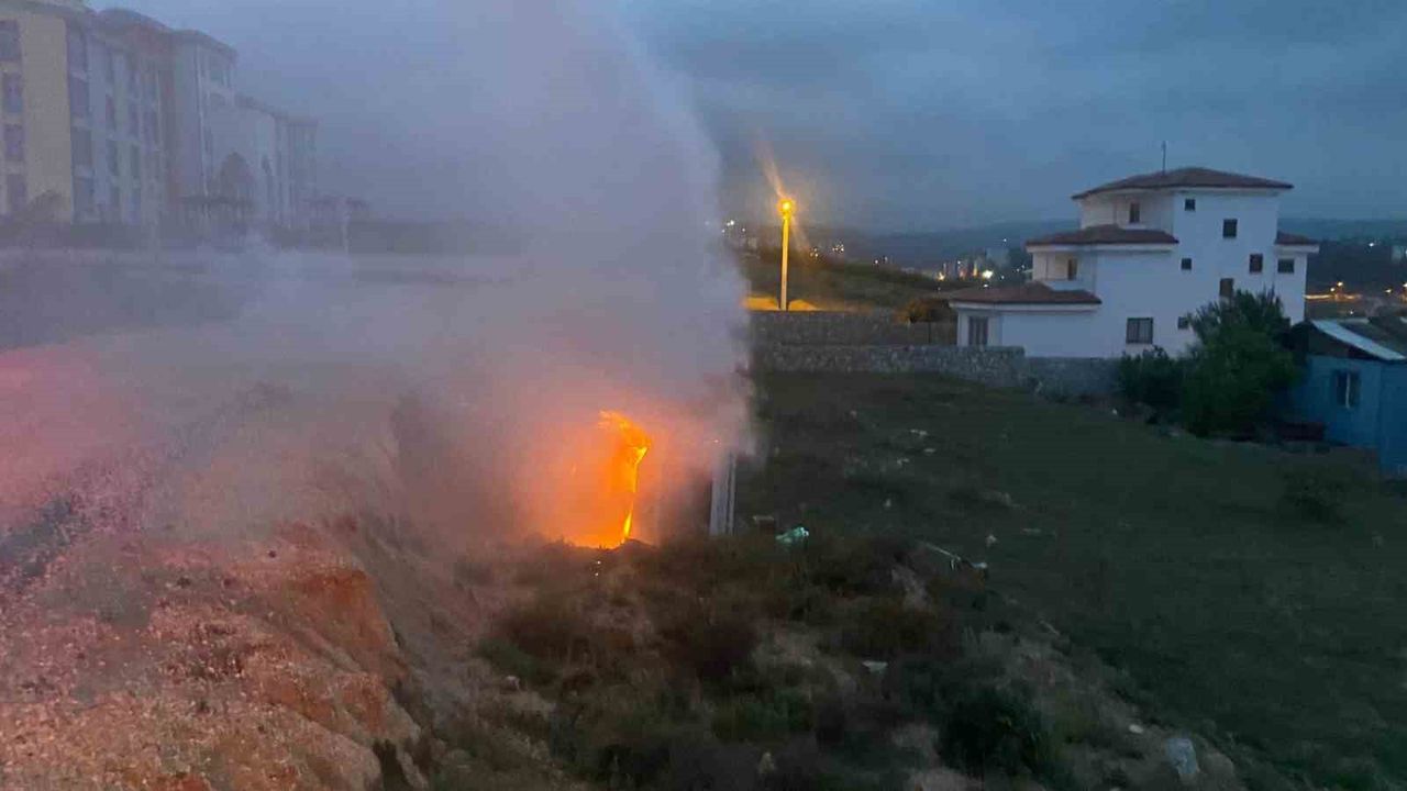 Bilecik’te seyir halinde devrilen kamyonet bir anda alev alırken, yangın korku dolu gözlerle izlendi.