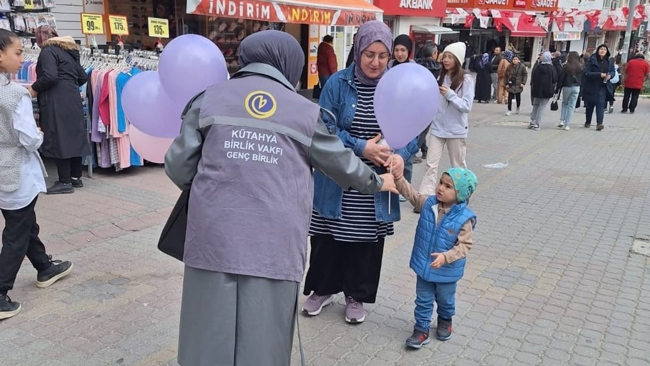 Kütahya’da Birlik Vakfı üyeleri, Berat Kandili nedeniyle çocuklara balon dağıttı.