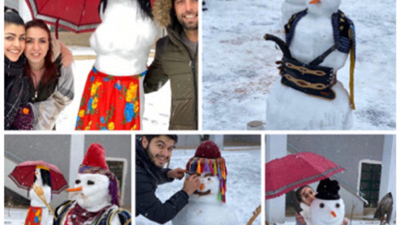 Eskişehir Osmangazi Üniversitesinde (ESOGÜ) düzenlenen etkinlikte yapılan kardan adamlara giydirilen yöresel kıyafetler ilginç görüntülere neden oldu.