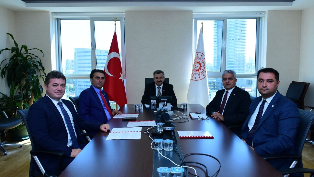 Eskişehir OSB Yönetim Kurulu Başkanı Nadir Küpeli, Başkan Vekili ve ATAP A.Ş. Yönetim Kurulu Başkanı Metin Saraç, Bölge Müdürü Erhan Tatar ve ATAP A.Ş. Genel Müdürü Dr. Sedat Telçeken ile birlikte Sanayi ve Teknoloji Bakan Yardımcısı Hasan Büyükdede ve Sanayi Bölgeleri Genel Müdürü Fatih Turan’ı ziyaret etti. Gerçekleşen ziyarette, Eskişehir OSB ve ATAP A.Ş. tarafından yürütülen çalışmalar hakkında Bakan Yardımcısı Büyükdede’ye bilgiler verildi.