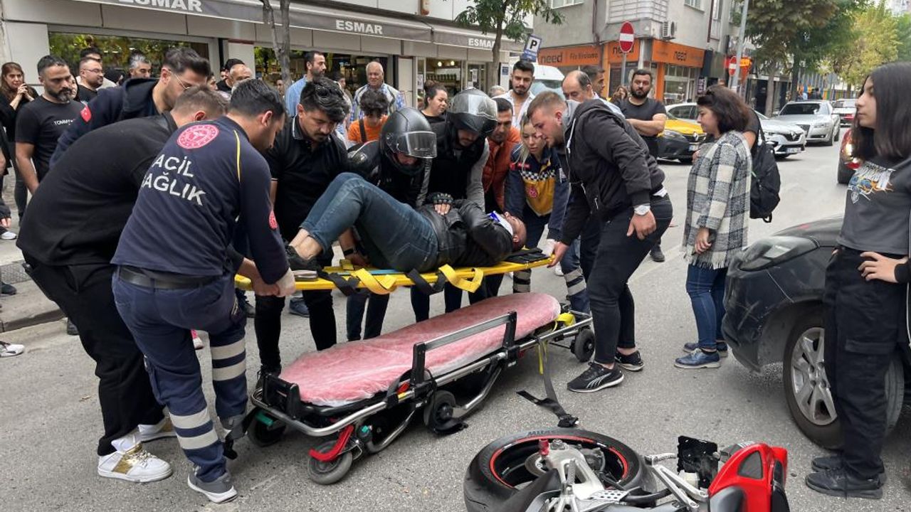 Eskişehir’de cadde üzerinde ‘U dönüşü’ yapan otomobile çarpan motosikletin sürücüsü yaralanarak hastaneye kaldırıldı.