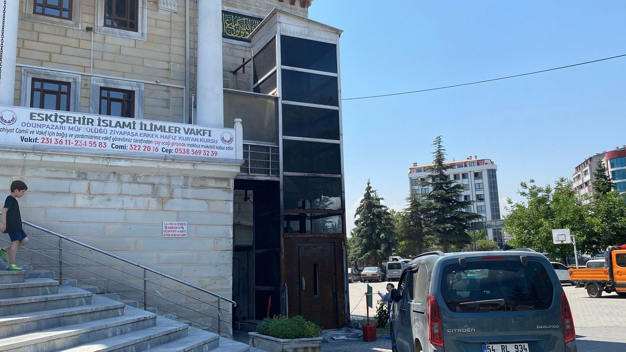 Eskişehir'de İlahiyat Camii'nin avlusunda park halindeyken alev alan minibüsün çarpması sonucu hasar gören asansör onarım bekliyor. Fevziçakmak Mahallesi Muhtarı Ayşe Çıraklı, "Asansör hala onarılmadı. Engellilerimiz için asansör şart. Bakım ve onarım yapılmasını istiyoruz" dedi.