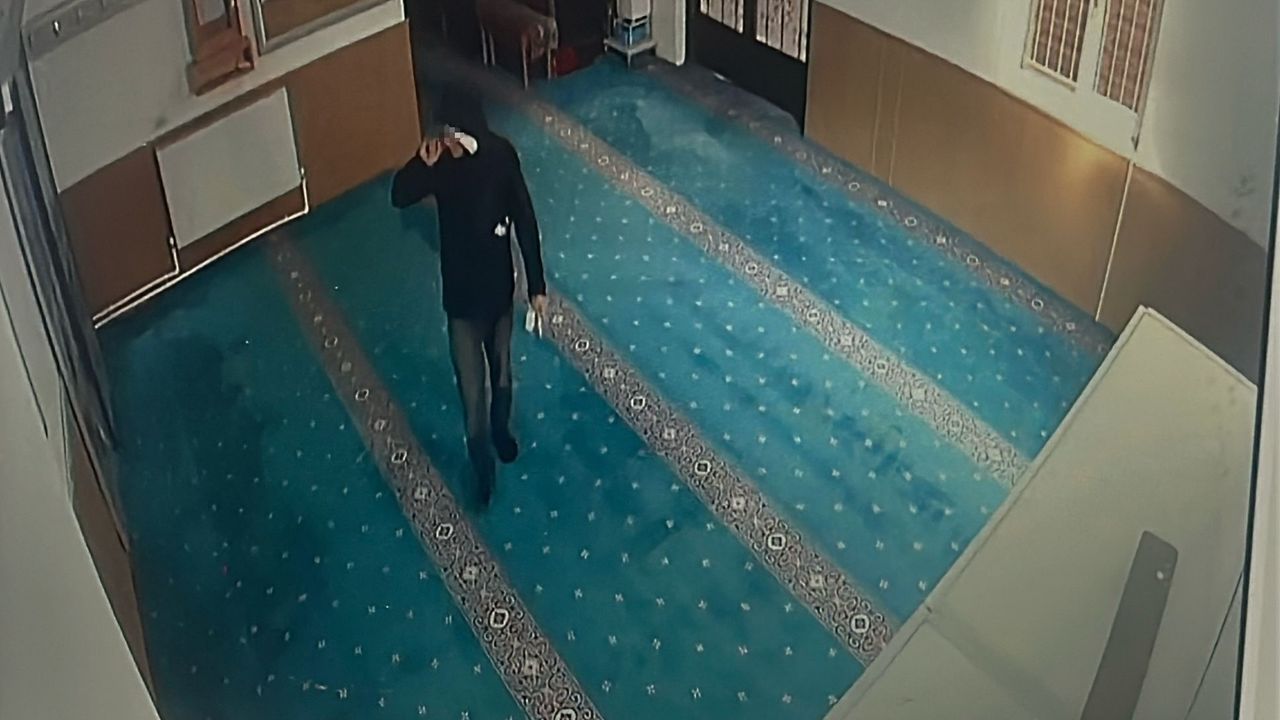Eskişehir’de bir camiye giren şüpheli, sebile takılan damacana su için biriktirilen parayı çalarken bir mevlitten kalan meyve suyunu içip keki yedi. Camdan giren şahıs görevli odasının da kapısını kırdı.