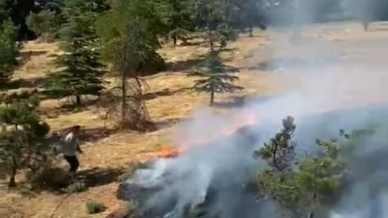 Eskişehir’de çamlık bir arazide çıkan ve ilk müdahaleyi vatandaşların evlerinden çektikleri hortumla yaptığı yangın büyümeden söndürüldü.
