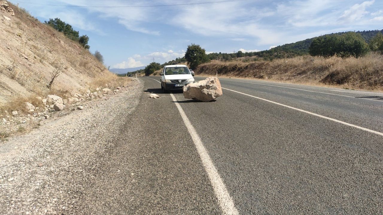 Kütahya’nın Domaniç ilçesinde karayoluna düşen büyük bir taş kütlesi ulaşımı aksatırken, cana ve mala zarar gelmemesi sevindirdi.