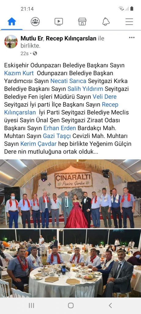 Geçtiğimiz gün Seyitgazi Belediyesi çalışanın kızının düğününe Odunpazarı Belediye Başkanı Kazım Kurt ile Seyitgazili olan Belediye Başkan Yardımcısı Necati Sarıca, İYİ Parti ilçe Başkanı Recep Kılınçarslan ile Seyitgazi ve Büyükşehir Belediye Meclis üyesi Ünal Şen’de katılmıştı. İYİ Parti İlçe Başkan Yardımcısının yeğeninin düğüne katılanlara teşekkür eden paylaşımında Ünal Şen için " İYİ Parti Meclis üyesi ifadesini kullanması ve Seyitgazi Belediye Başkanı Uğur Tepe’nin düğünde olduğu halde fotoğraf karesinde bulunmaması dikkatlerden kaçmadı.
