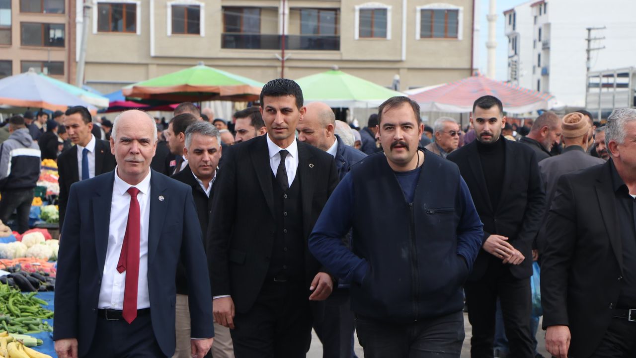 MHP İl Başkanı İsmail Candemir,Çifteler Belediye Başkanı Kadir Bıyık,Çifteler İlçe Başkanı Mehmet Emin Yüce İl ve İlçe Yönetim Kurulu Üyeleriyle birlikte Çifteler ilçesinde pazarda vatandaşlarla ve esnafla buluşup hayırlı işler dileklerinde bulundular.