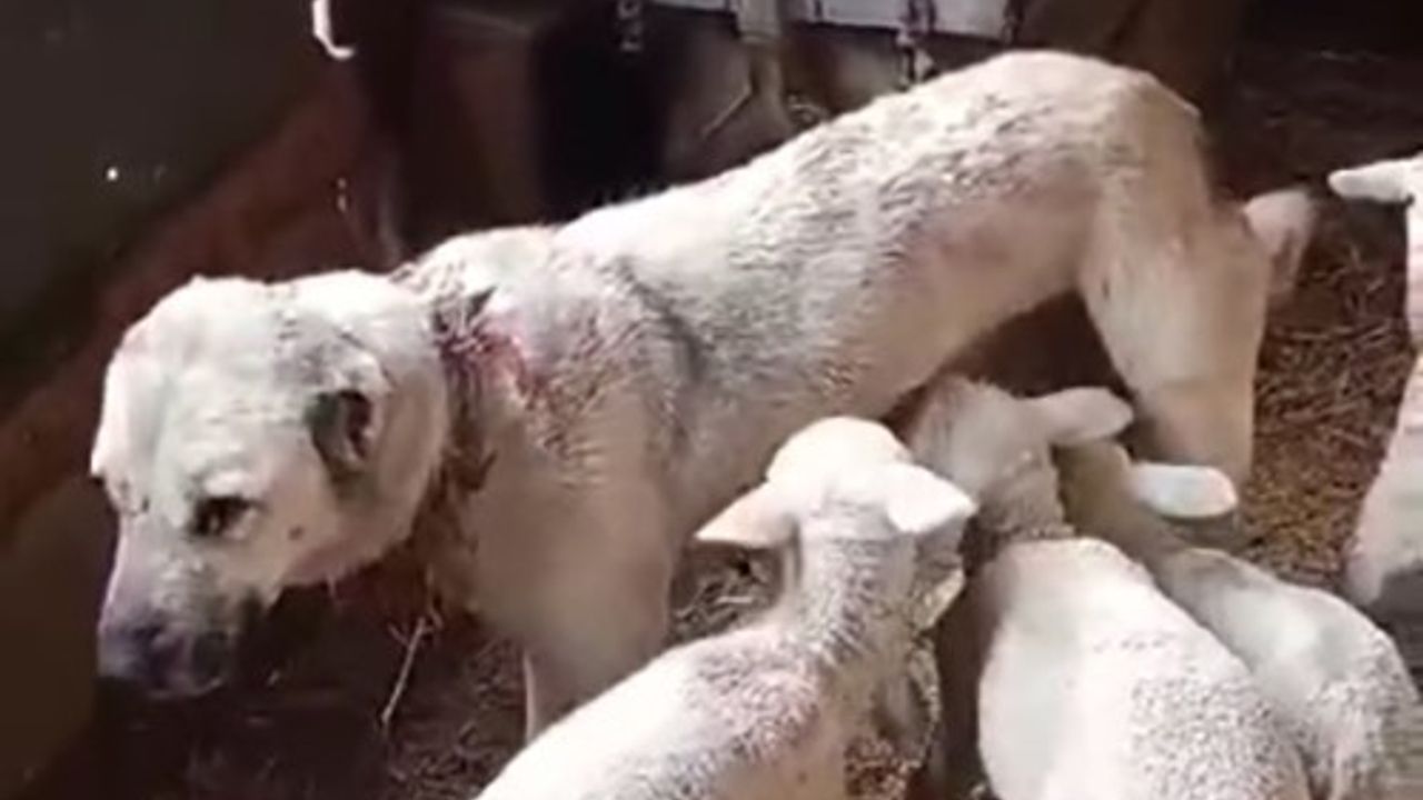 Seyitgazi ilçesi Taşlık Mahallesi’nde bir çoban köpeği, koruduğu sürüde bulunan kuzuları emzirdi. Görenleri hayrete düşüren olay, sürü sahibi Ahmet Özkan tarafından cep telefonu kamerasıyla saniye saniye kaydedildi. Sürüde bulunan çok sayıda kuzunun çoban köpeğinden süt emdiğini görenler duruma inanmakta güçlük çekti.