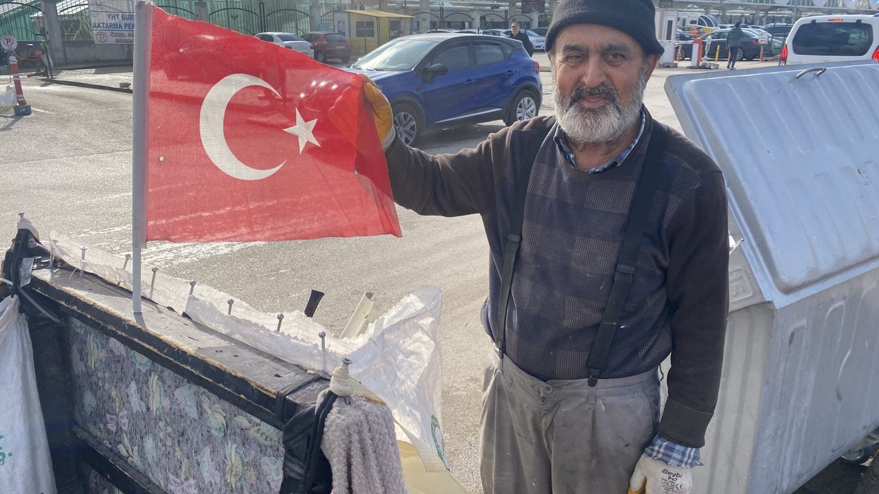 Demiryolundan emekli olan 71 yaşındaki Hüseyin Fırat, kendisine ek gelir sağlamak için bisikletiyle gezerek geri dönüşüm işçiliği yapıyor. Evdeki kuşları beslemek amacıyla dışarıdan ekmek toplarken bu işe başlayan Fırat, sattığı atıklardan elde ettiği parayla ev kirasını ödüyor. Ayrıca evde sıkılmamak için kendisine ek bir uğraş olarak bunu yapan emekli vatandaş, çöplerden bulduğu Türk bayraklarını ise bisikletinin en görünür yerlerine asarak dalgalandırmaya devam ediyor. Çöpe atılan bayrak sayısının bir hayli fazla olduğunu ifade eden Hüseyin Fırat, bu duyarsızlığı yapan vatandaşlara tepkisini de dile getirerek milli değerlere sahip çıkılması konusunda çağrıda bulundu.