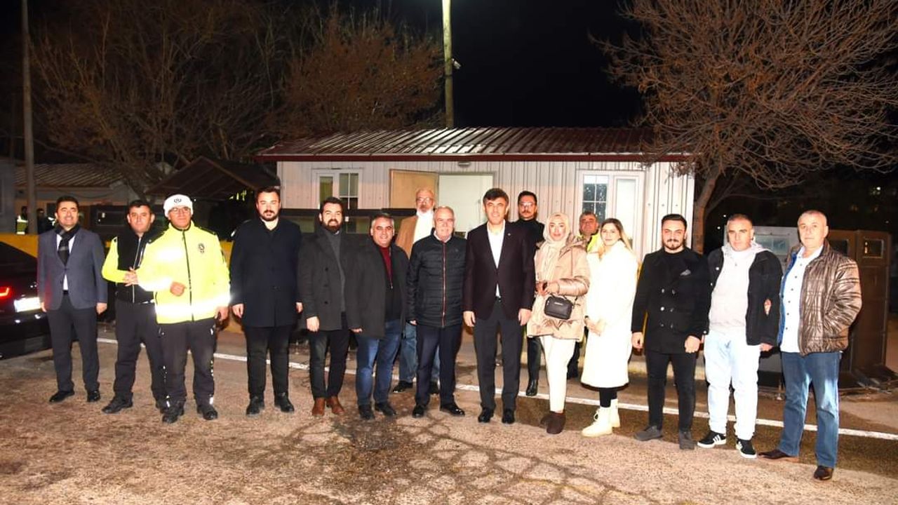 Cumhur İttifakı bileşenleri Adalet ve kalkınma Partisi Eskişehir İl Başkanı Zihni Çalışkan ve Milliyetçi Hareket Partisi Eskişehir il Başkanı İsmail Candemir 2022 nin son dakikalarında görevi başında nöbet tutan Emniyet ekiplerini ziyaret ettiler .