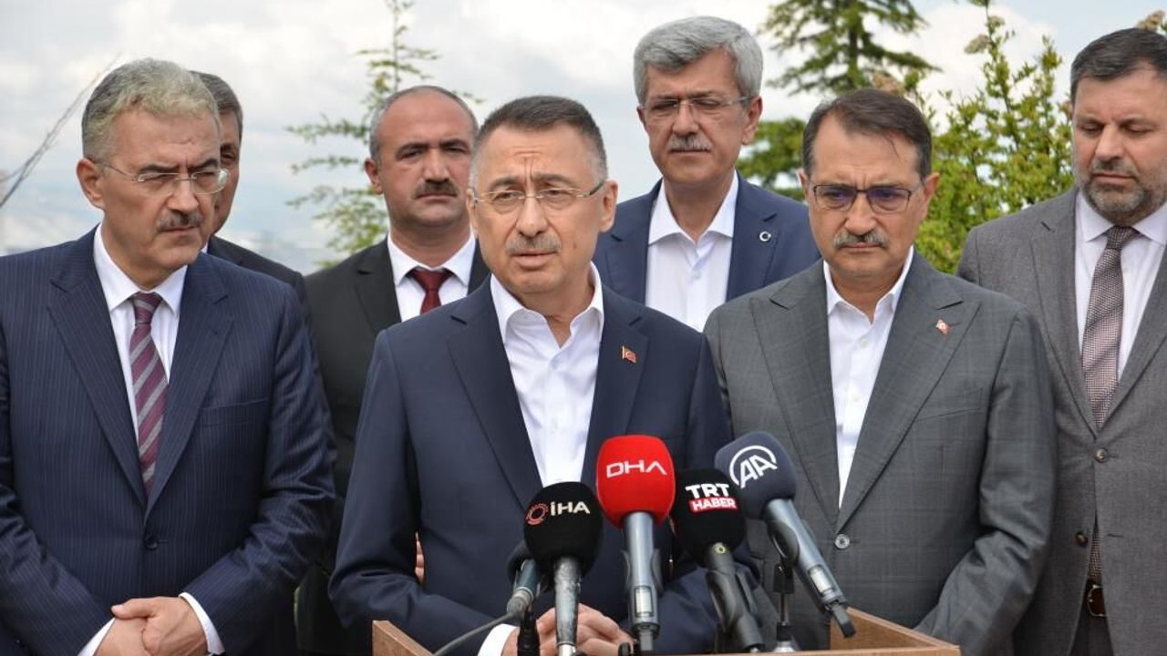 Cumhurbaşkanı Yardımcısı Fuat Oktay’ın konuşmasının ardından 6’lı masanın belirttiği cumhurbaşkanı yardımcılığı sayısına atıfta bulunan Enerji ve Tabii Kaynaklar Bakanı Fatih Dönmez, “Bu arada siz tabii cumhurbaşkanı yardımcımız olarak beş yıldır tek başına bu görevin sorumluluğunu üstlendiniz. Yedi kişi şu anda talip. Büyük iş yapmışsınız” dedi.