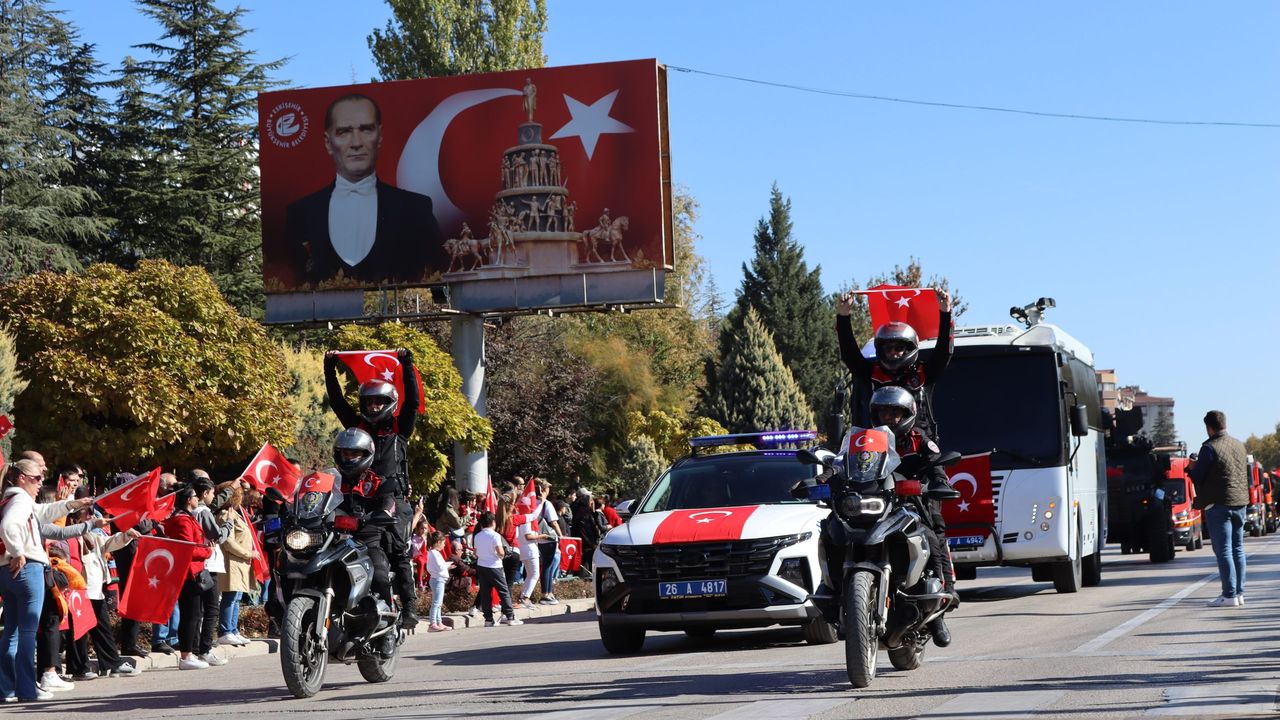 29 Ekim Cumhuriyet Bayramı'nın 101'inci yıl dönümü yurt genelinde olduğu gibi Eskişehir'de de coşkuyla kutlanıyor. Bu çerçevede, saat 10.30'da Atatürk Bulvarı üzerinde bir kutlama töreni düzenlendi. Törende ilk olarak Eskişehir Valisi Hüseyin Aksoy, tören aracı ile askeri birliklerin ve vatandaşların bayramını kutladı. Ardından hem geçmişten bu yana hem de Ankara'da Türk Havacılık ve Uzay Sanayii A.Ş.'ye (TUSAŞ) saldırısında şehit düşen vatandaşlar için saygı duruşu yapılıp, askeri bando eşliğinde İstiklal Marşı okundu. Vali Hüseyin Aksoy'un günün anlam ve önemini vurguladığı program, öğrenciler tarafından okunan şiirler ile halk oyunu gösterileriyle devam etti. Program, askeri uçakların gösteri uçuşu ve resmi geçit töreni gerçekleştirilmesinin ardından sona erdi.