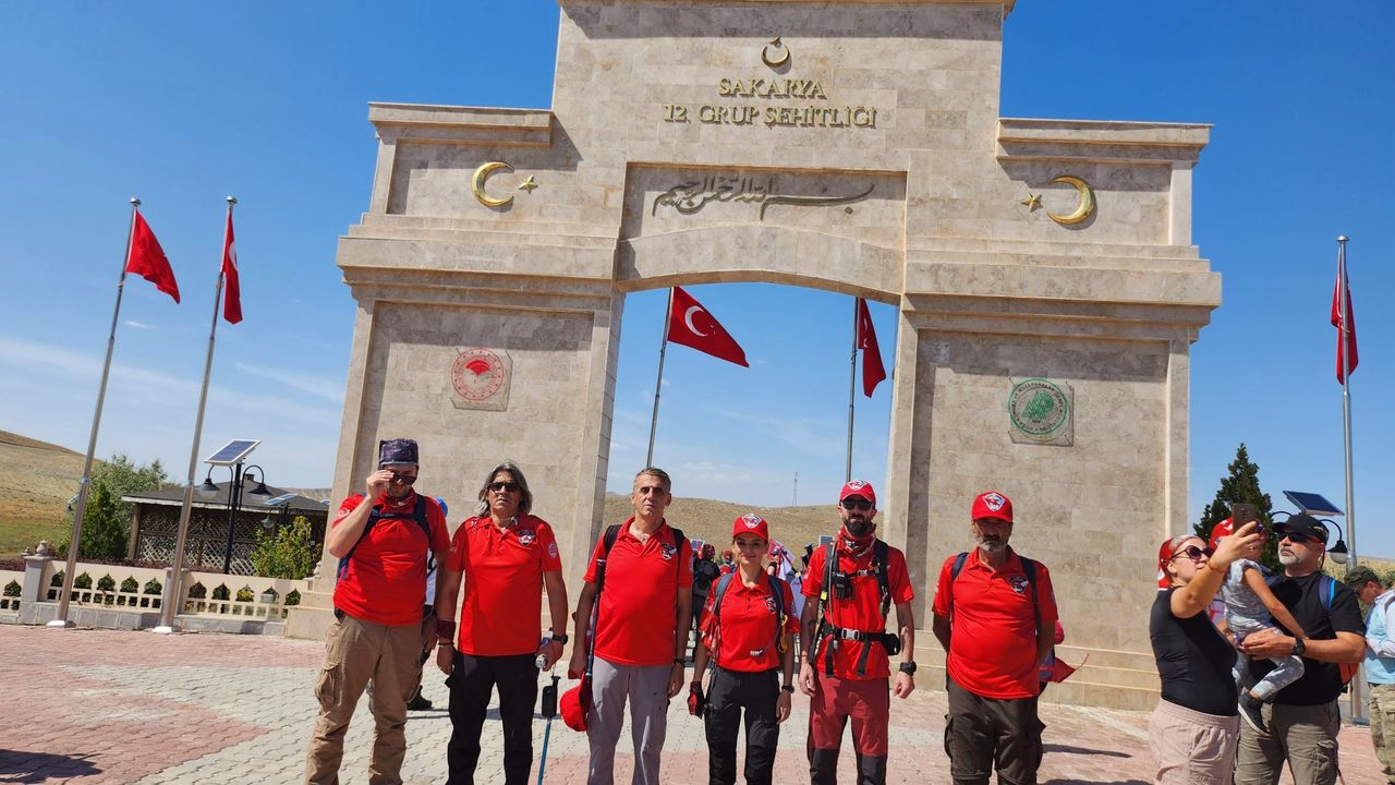 Sakarya Meydan Muharebesi'nin 103'üncü yıl dönümü nedeniyle düzenlenen Diriliş Yolu Yürüyüşü'ne katılan Dorlion Arama Kurtarma (DAK) ekibi, yaklaşık 25 kilometre yol kat ederek tarihi noktalarda şehitleri andı.