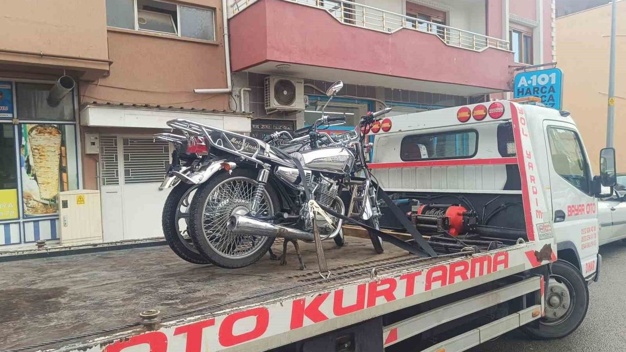 Polis ekipleri tarafından ilçe merkezinde gerçekleştirilen denetimde 13 motosiklet sürücüsü durdurularak evrak kontrolleri yapıldı. Denetimde çevreye rahatsızlık veren, sürücü belgesiz araç kullanmak, tescili zorunlu aracı plakasız kullanmak, motosiklet kullanırken koruyucu başlık kullanmak gibi kurallara uymayan 8 motosiklet trafikten men edildi.