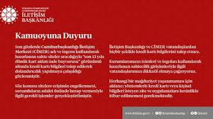 CİMER, kart aidatı iadesi iddiasını kullanılarak yapılan dolandırıcılık girişimleri hakkında bir açıklamaya yayınladı. Açıklamanın tamamı şu şekilde: