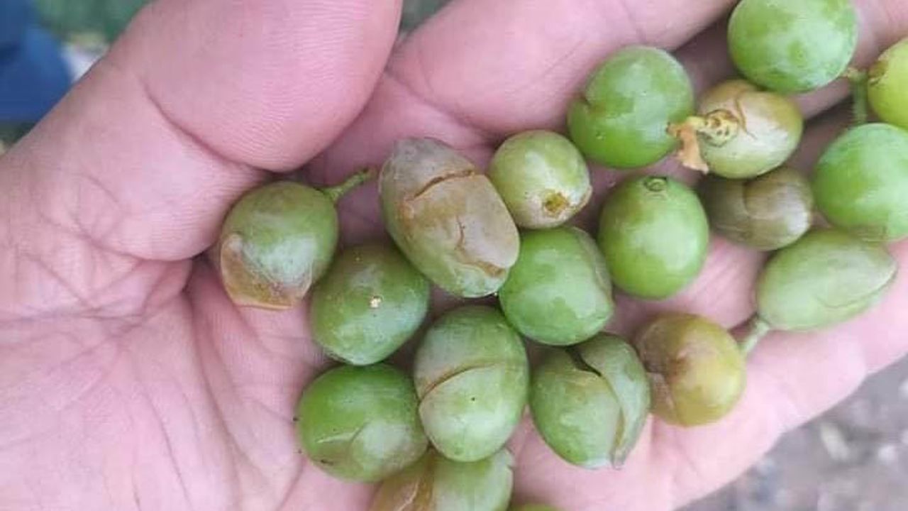 Özellikle olgunlaşan üzümler bazı taneleri dökülürken bazıları da çatladı.