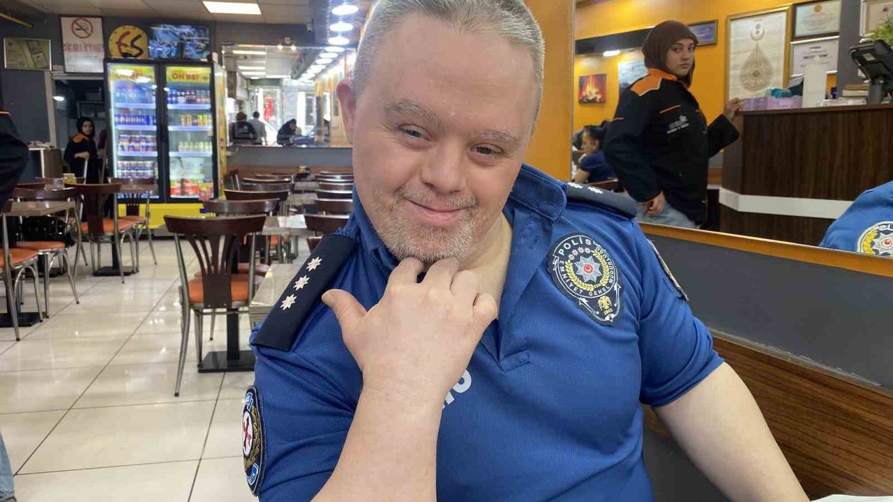 Eskişehir’de bir mahallede sürekli polis üniforması ile gezen ve vatandaşların "komiserim" diye hitap ettiği down sendromlu vatandaş ilgi çekiyor.
