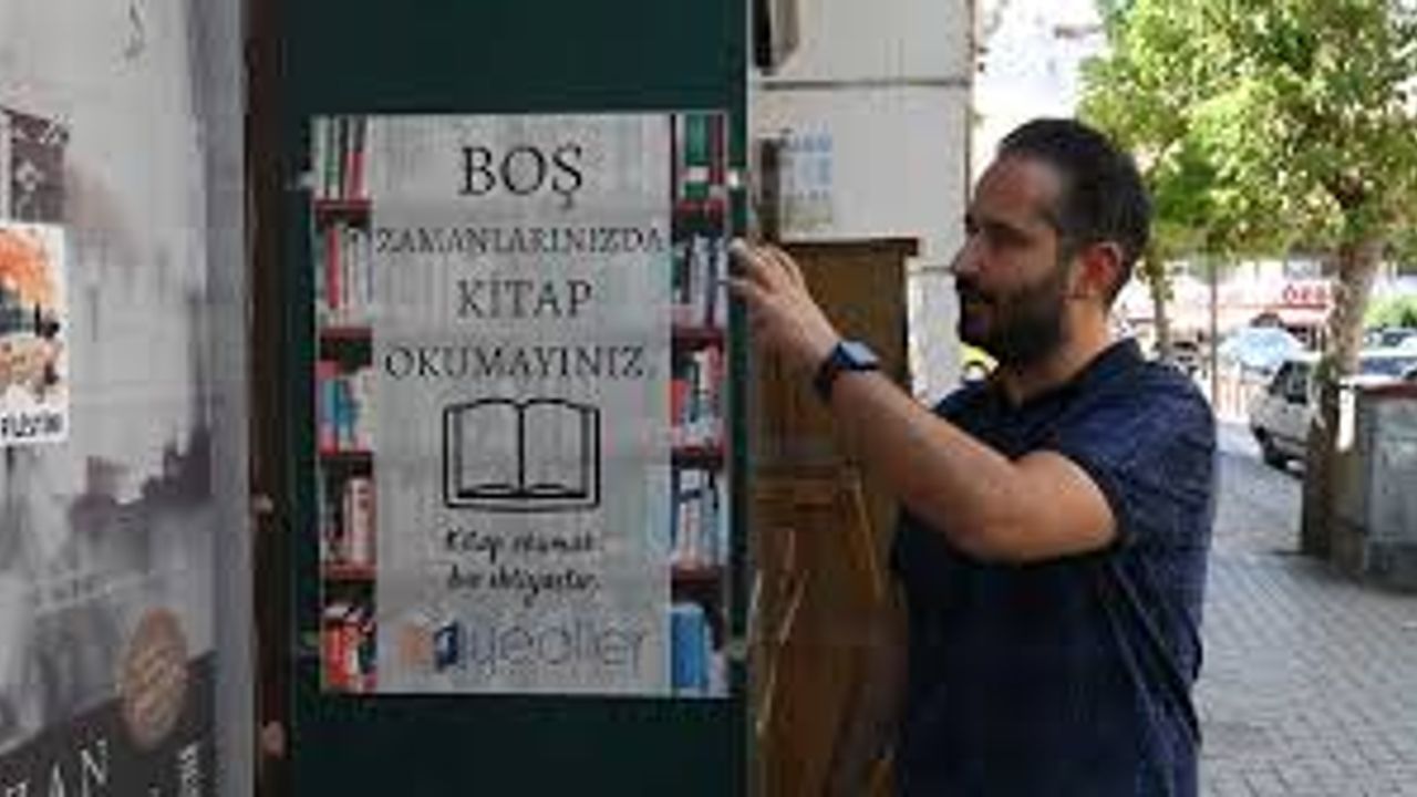 İbrahim Karaoğlanoğlu Caddesi'nde bulunan bir sahaf dükkana astığı yazı ile dikkat geçiyor. 'Boş zamanlarınızda kitap okumayınız. Kitap okumak bir ihtiyaçtır' sloganı bulunan afişte, 'Boş zamanlarınızda kitap okumayınız' kısmında büyük punto, ikinci kısımda ise küçük punto tercihinin yapılması cadde üzerinden geçenler vatandaşlarda merak uyandırıyor. Bu durum ise dükkan sahibi Ömer Faruk Bozdemir'e 'Neden kitap okumayalım?' sorusunun yöneltilmesine neden oluyor. Bozdemir ise bu soru ile gelen müşterilere durumu izah ederek kitap okuma alışkanlığı hakkında farkındalık oluşturmak istediğini aktarıyor.