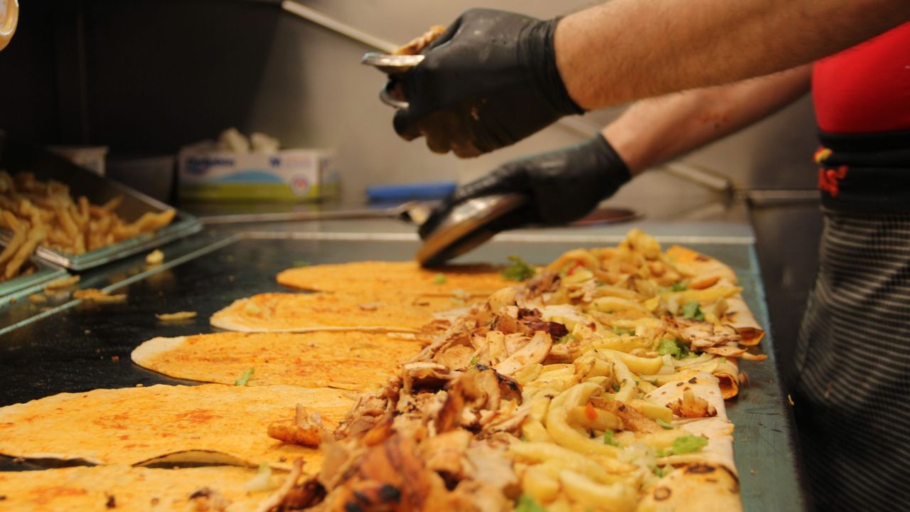 Eskişehir'de müşterilere dürüm hazırlarken kullandığı tabaklarla ritim tutturan döner ustası Kadir Deniz, vatandaşların ve çevre esnafının ilgisini topluyor.