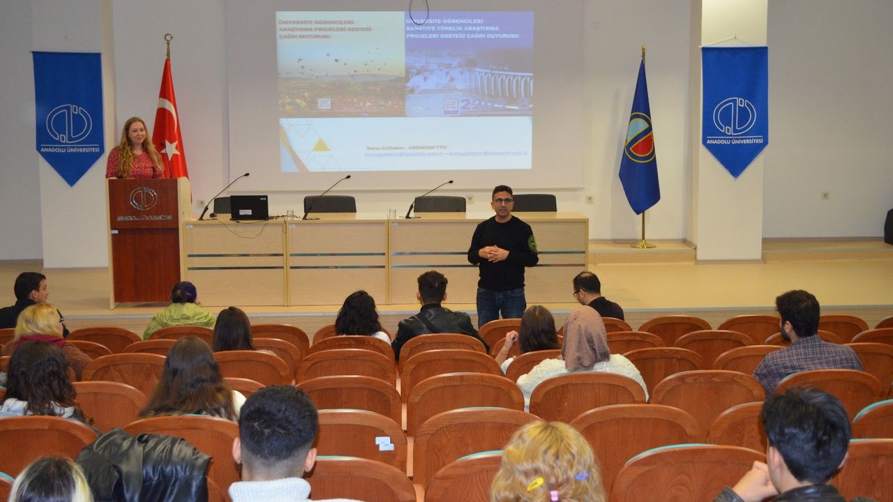 Anadolu Üniversitesi Eğitim Fakültesi Dekanlığı tarafından fakülte öğrencilerine yönelik ‘TÜBİTAK 2209-A Üniversite Öğrencileri Araştırma Projeleri Destekleme Programı’ bilgilendirme toplantısı gerçekleştirildi. Eğitim Fakültesi E blok konferans salonunda düzenlenen bilgilendirme toplantısında ARİNKOM Projeler Koordinatörü Banu Gültekin tarafından programa başvuru süreci ile ilgili bilgiler verildi.