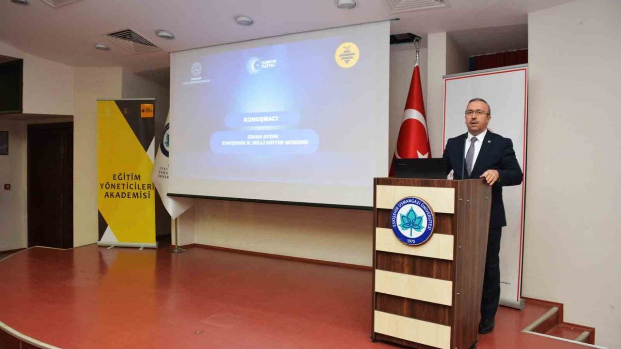 Eskişehir Osmangazi Üniversitesi Prof. Dr. Fazıl Tekin Konferans Salonunda düzenlenen "İtina İle Yaşamak" konulu söyleşiye İl Milli Eğitim Müdürümü Sinan Aydın, Müdürlüğlük idarecileri, okul ve kurum yöneticileri katıldı.