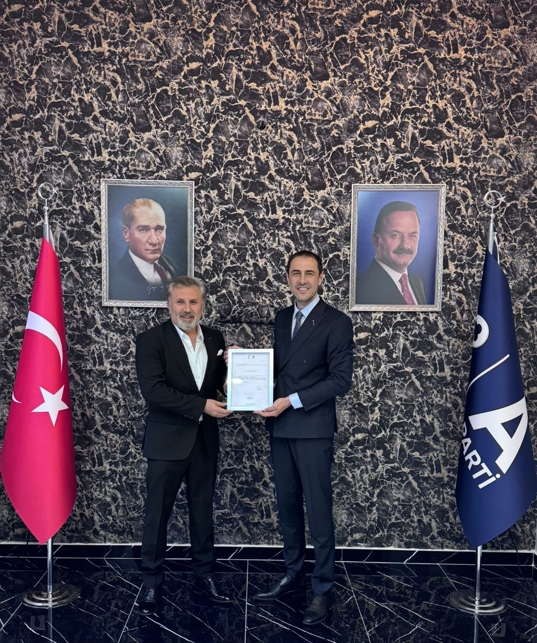 Naci Karakuyu Odunpazarı İlçe Başkanlığı görevine atanması mazbatasını İl Başkanı Çağlar Ölce'nin elinden aldı