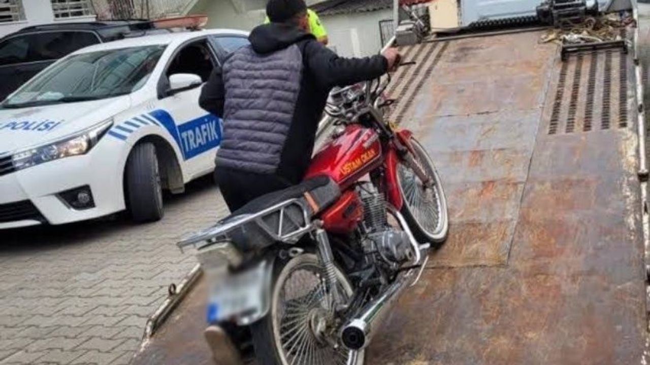 Ayrıca sürücü hakkında, ‘Resmi Belgeyi Bozmak, Yok Etmek veya Gizlemek’ suçu kapsamında adli işlem başlatılırken, motosiklet trafikten men edilerek otoparka çektirildi.