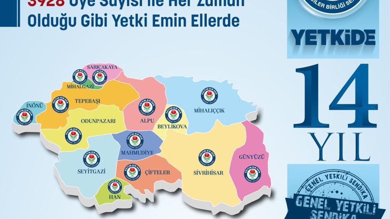 2023 yılı mutabakat sayılarına göre Eğitim-Bir-Sen Eskişehir 1 Nolu şubemiz 3928 üye sayısıyla en yakın sendikanın üye sayısının 1703 fazlasıyla 2009 yılında aldığı yetkiyi Eskişehir’in tüm ilçelerinde yine devam ettiriyor.