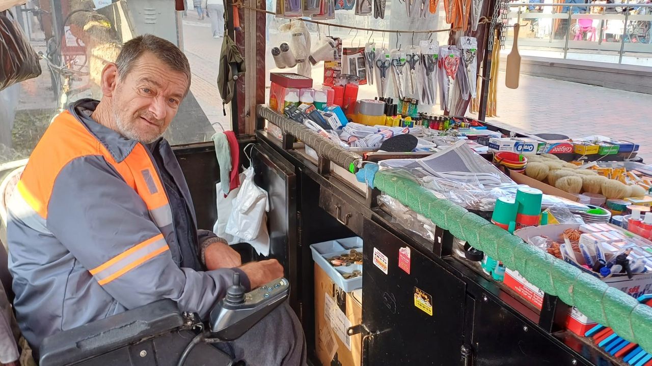 Eskişehir'deki Hamamyolu Caddesi'nde çocukluğundan bu yana seyyar satıcılık yapan Ümit Aktaş, yıllardır ekmeğini küçük tezgahından çıkarıyor.
