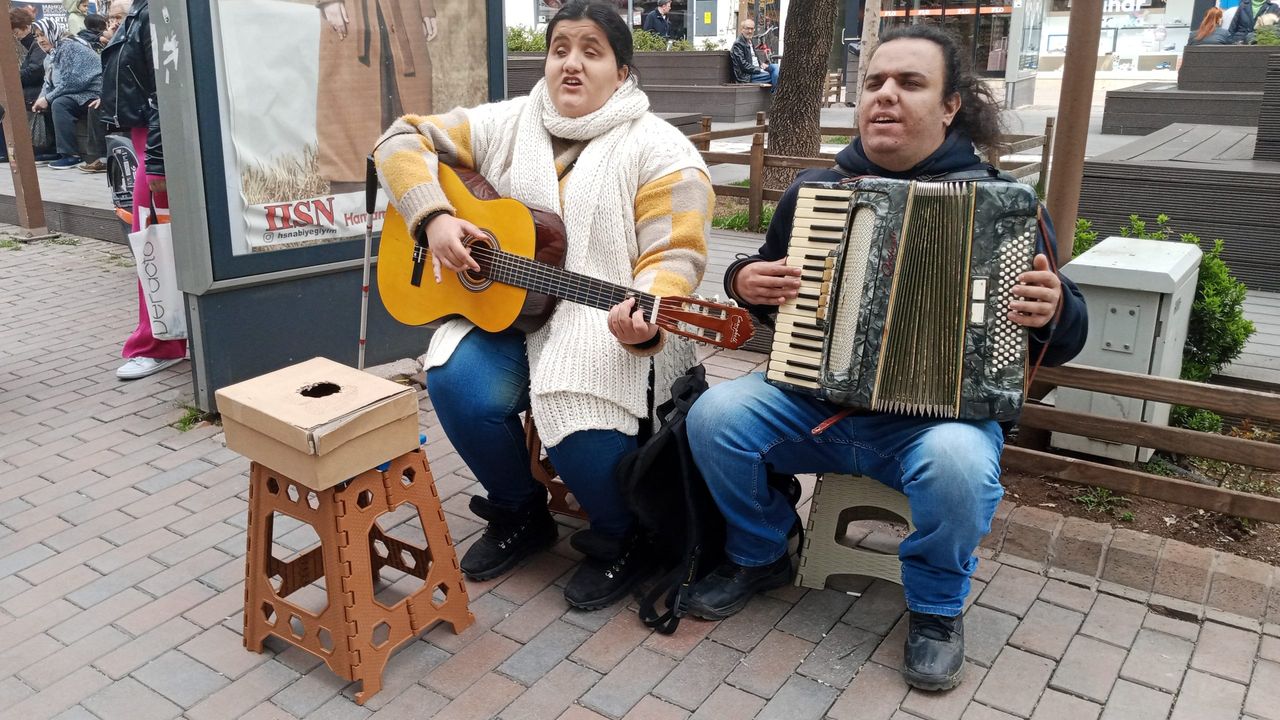 Bazı vatandaşlar engelli müzisyenlerin önlerinde bulunan kutuya bağış atarak sanatlarına destek olurken, bazıları da o anları cep telefonu kameraları ile kayıt altına aldı.