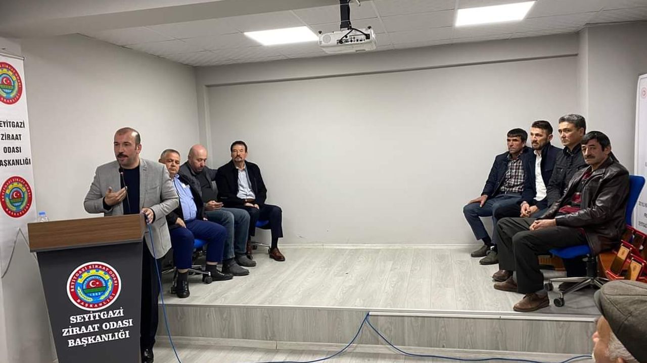 Seyitgazi Ziraat Odası Başkanı Erhan Erden faaliyetleri hakkında yaptığı Toplantıda; 2019-2023 Dönemi Görev yaptığımız süre içerisindeki;Yapmış ve ilçemize kazandırmış olduğumuz yatırım ve faaliyetleri sıraladı