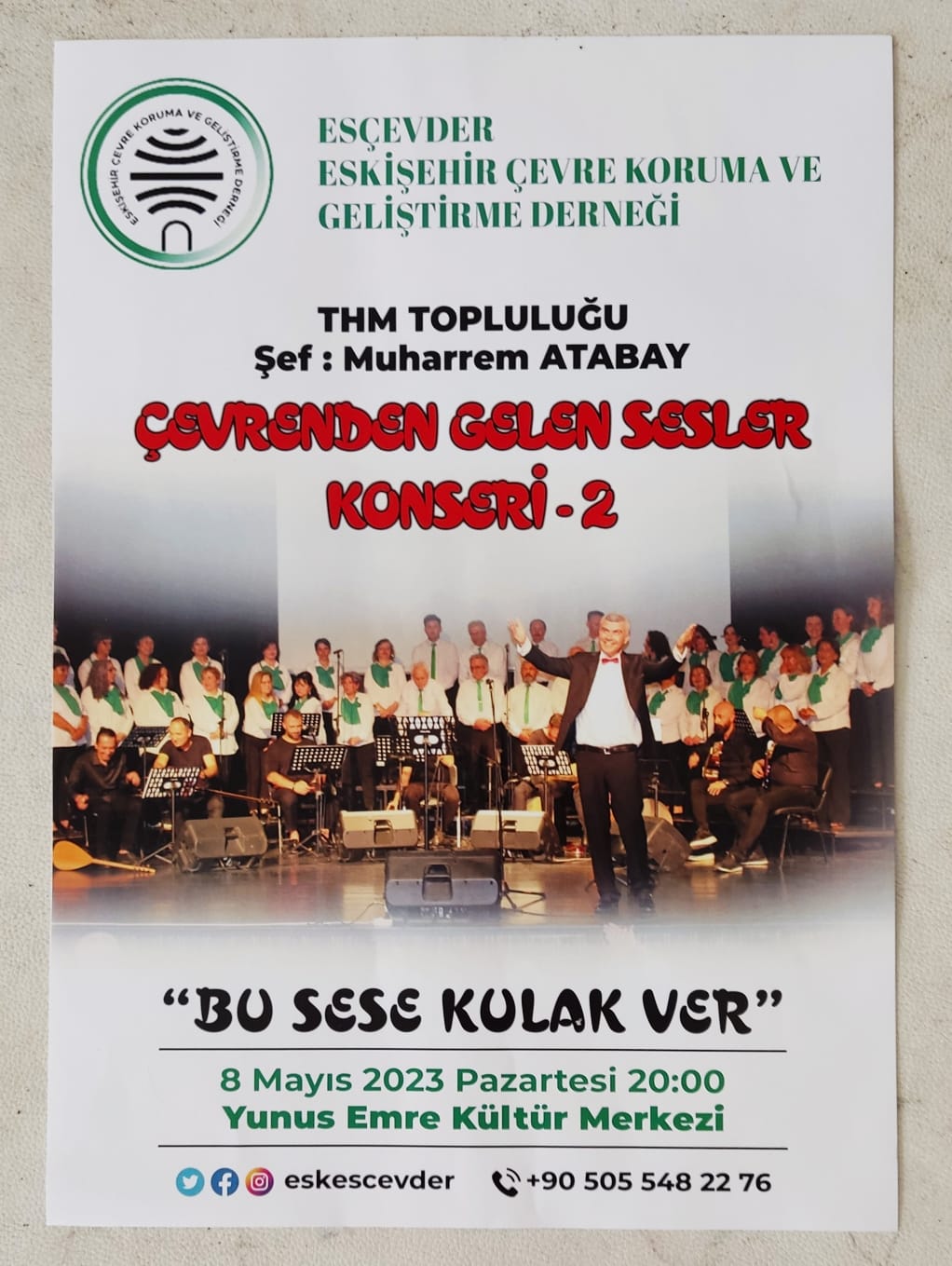 Eskişehir Çevre Derneği ( ESÇEVDER ) olarak ilk konserini geçen sene veren THM korosu bu sene de Yunusemre Kültür Merkezinde 8 Mayıs Pazartesi saat.20,00 de Yunusemre Kültür Merkezinde ikinci konserini verecektir.